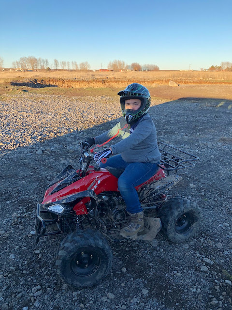 After... she left Josh took the twins and their friend Cristian riding on their four wheelers on his parents land. Such a fun dad!