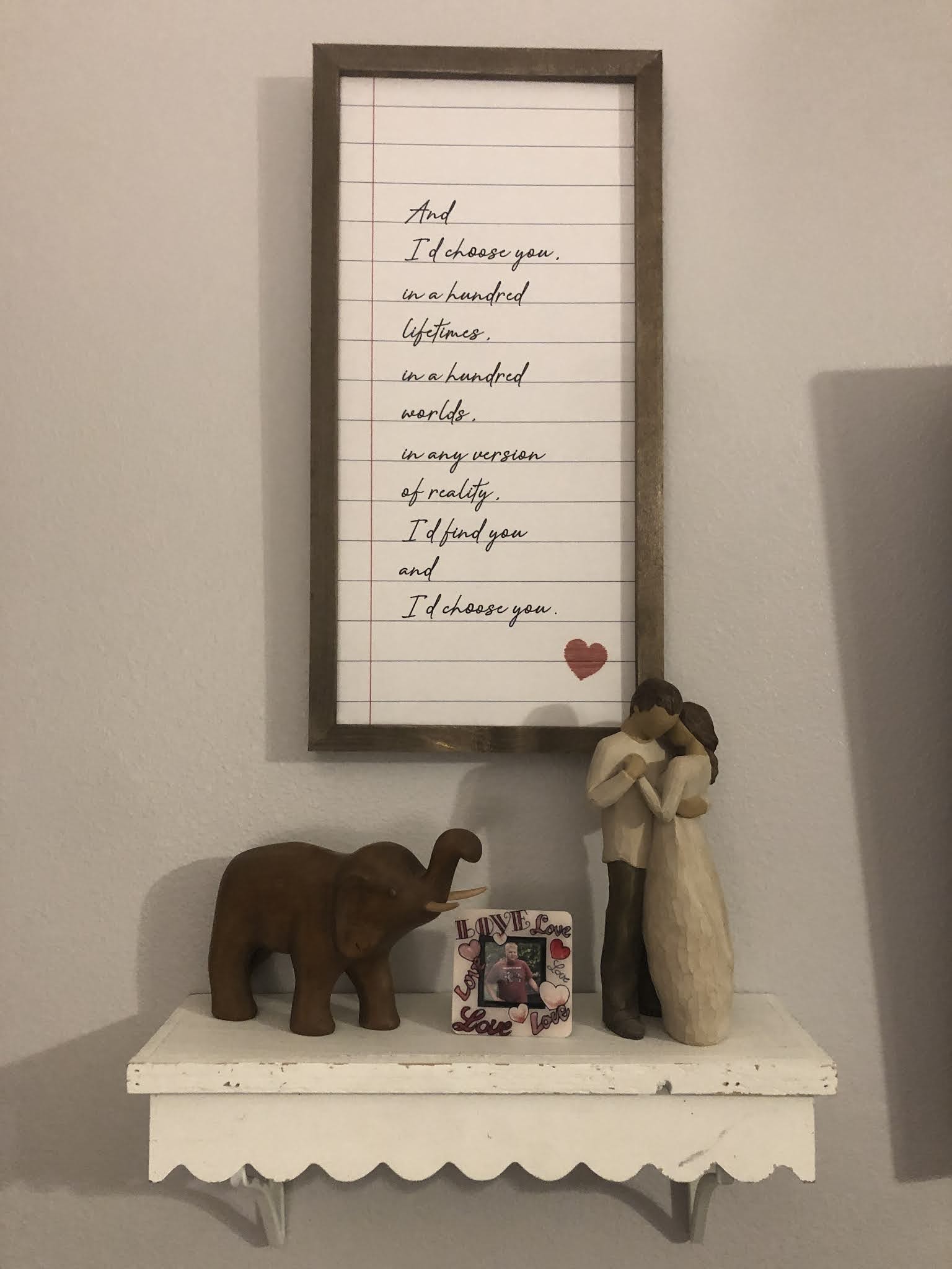 Hanging... all the new things I got at Hobby Lobby two weeks ago up around the house with Josh. He's so amazing and patient when it comes to decorating. The new things I hung around make me so happy!! Josh also built the new book cart I got for him to use as a side table for his easy chair, and put together the lamp I got for the family room. It creates such a cozy look.