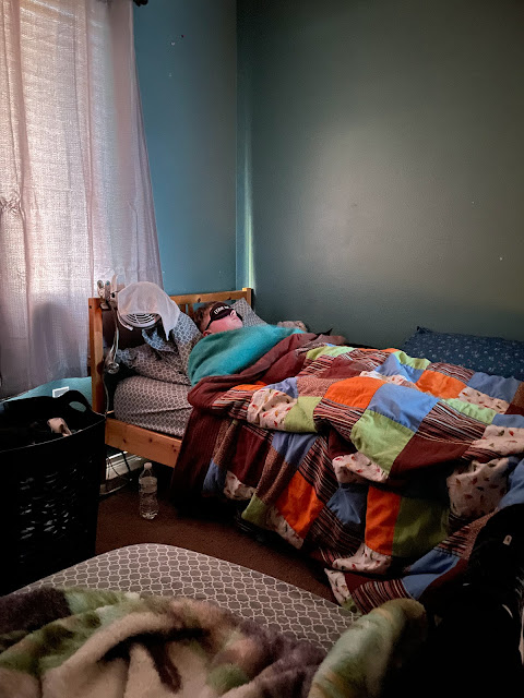 The side effects of the COVID booster we opted to get him have been brutal; fever, body aches, chills, and a headache that is giving him a run for his money. I pull together my arsenal of mom tools to try and soothe him. Tylenol, fresh ice water, a cool cloth, a heating pad. But all he really wants is me. And so I sit, barely aware of the din downstairs, dinner being made, his siblings doing homework, dogs barking, and read an ebook in the dark while he tries to sleep on the bed across from me.